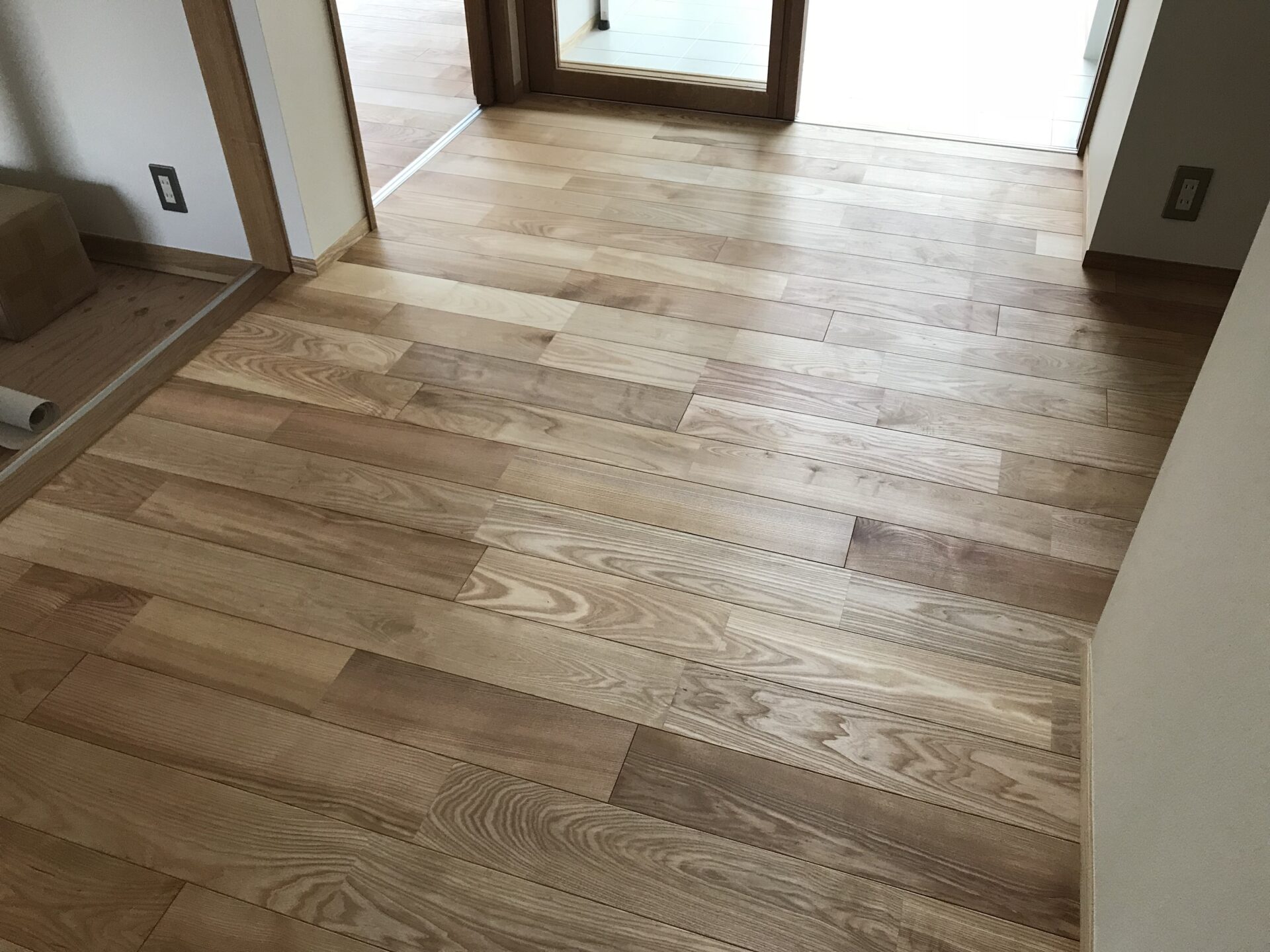 床の無垢フロアが塗装され