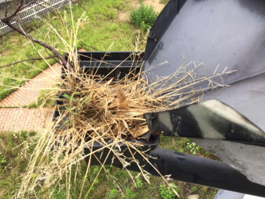 ここは2階の樋のマスの中です。鳥は屋根の隙間にも巣を作ったり、ほっとけば詰まってこれが原因で雨漏りになることもあります。