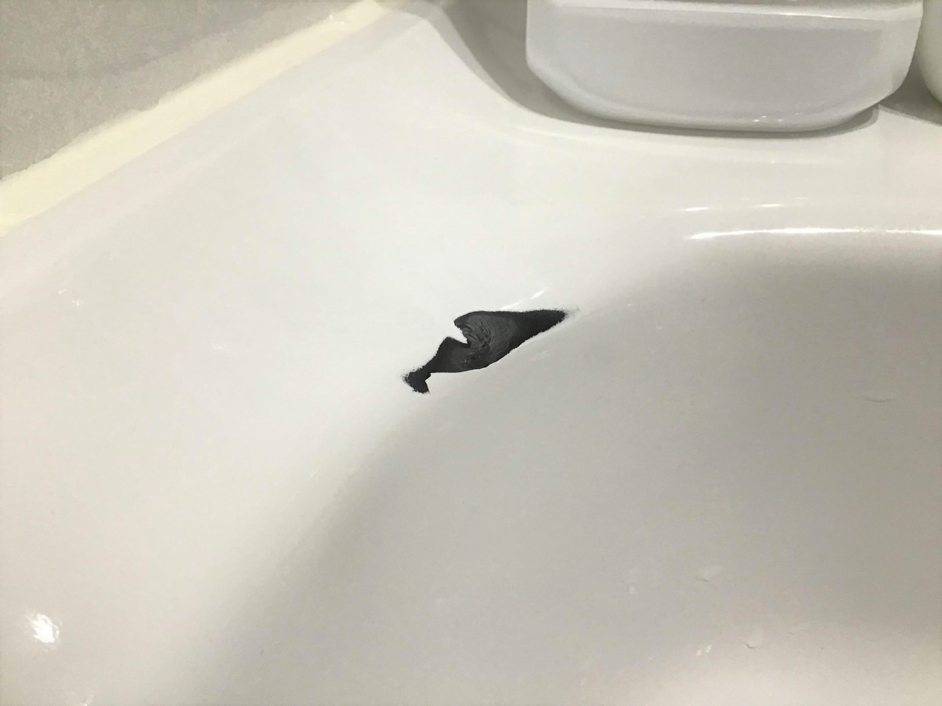 まだ設置して1年ぐらいのホーロー製の洗面台に傷が入っていました。