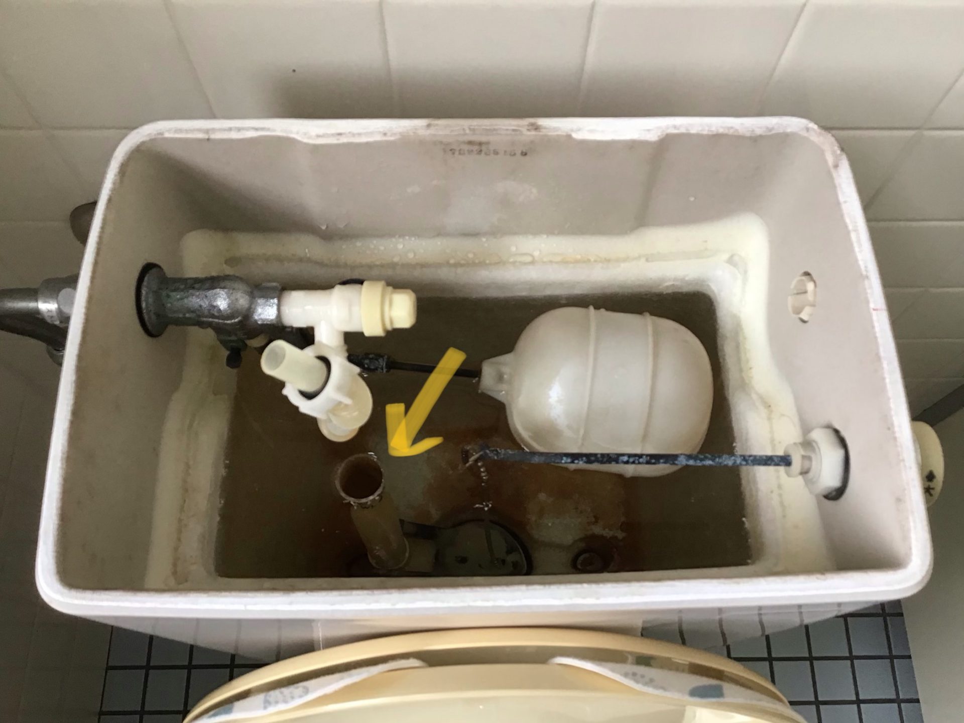 タンク内を覗くと、オーバーフロー管より上に水位が上がり、