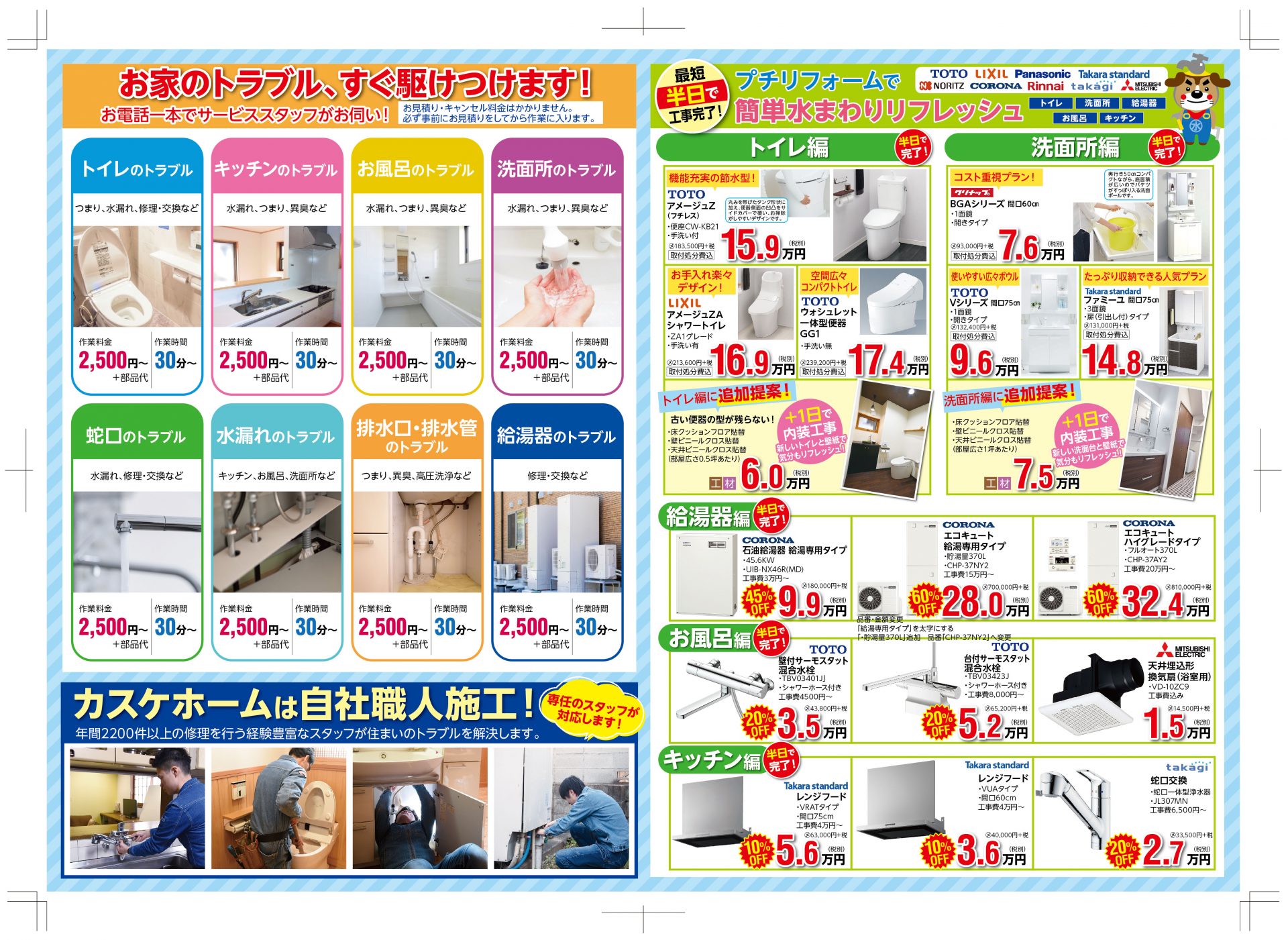 水まわりの故障やどこに頼んだらいいか分からない小さな故障でお困りの方は