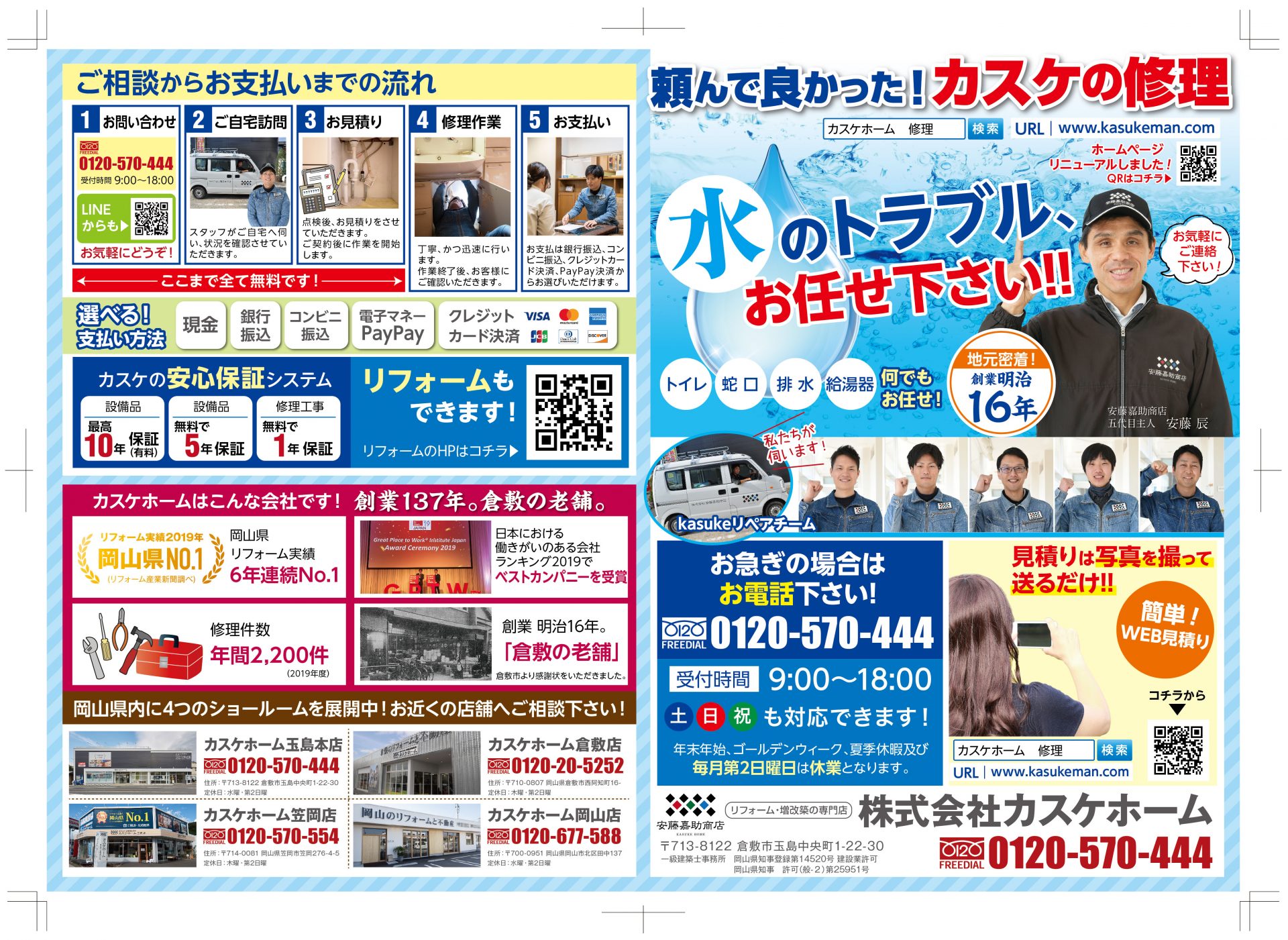 先日、玉島・笠岡・矢掛商圏にメンテナンスチラシを新聞折込をさせて頂きました。
