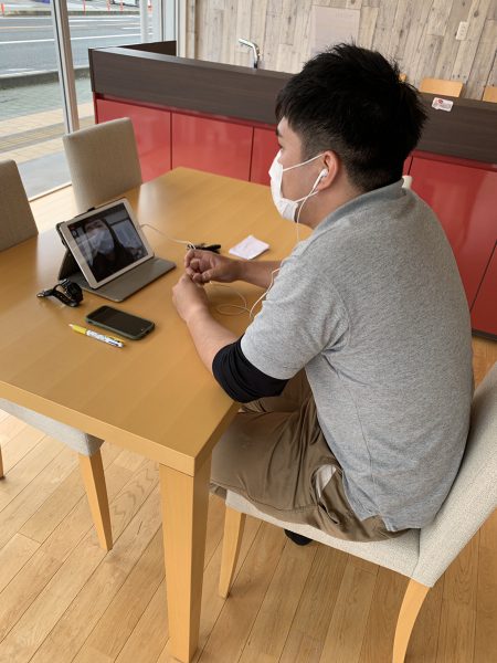 新入社員とロープレをオンラインで実施している様子(玉島店⇔笠岡店)