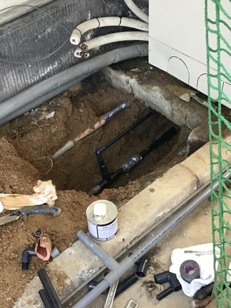 コンクリートのちょうど下に漏水部があり修理が難しそうでしたが、地面を掘り起こし