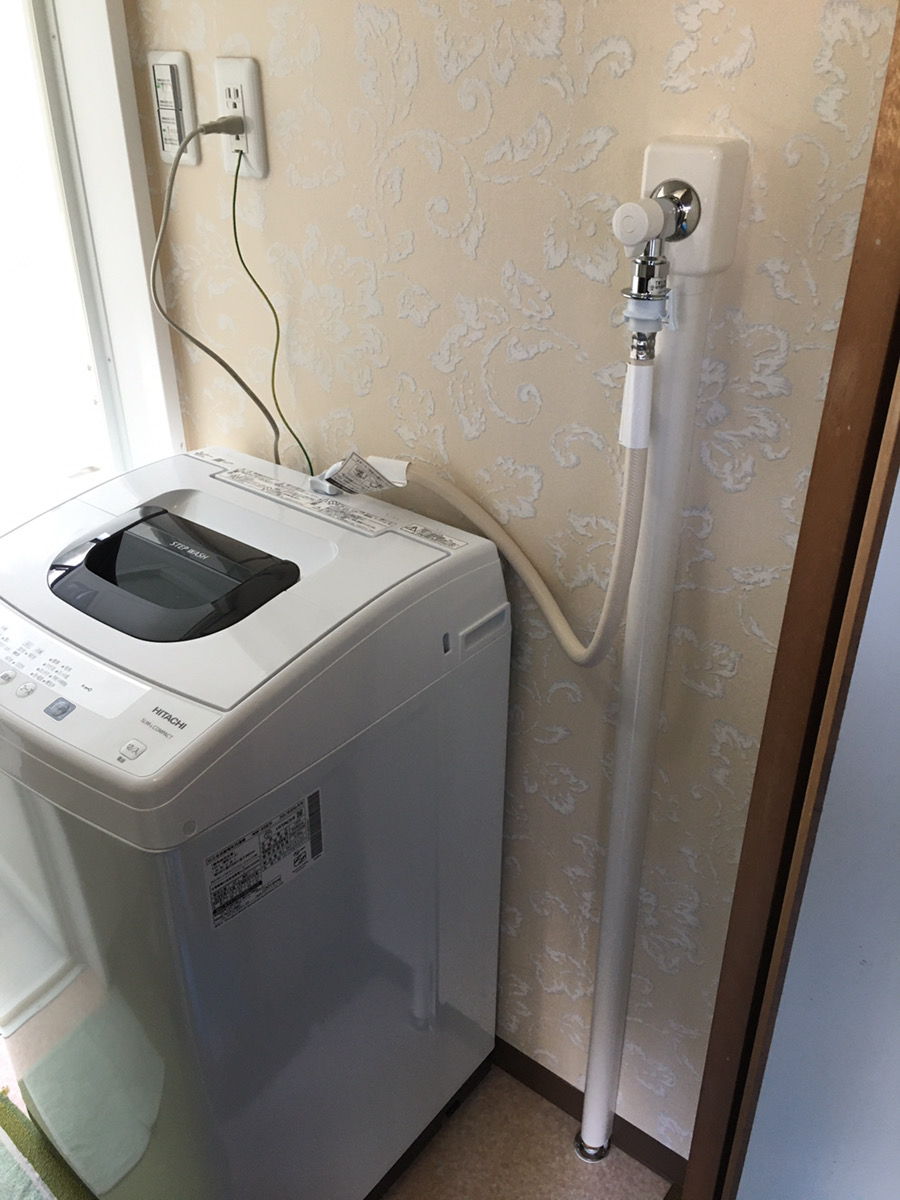 今まではお風呂の水栓から二層式洗濯機へ給水されていたので、洗濯機用の水栓がありませんでした。