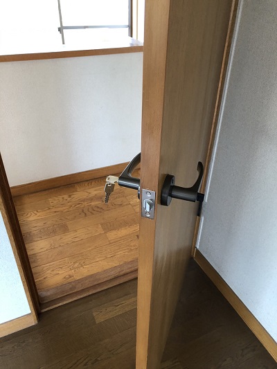 レバーハンドルを、鍵を抜き差しできるタイプに交換しました。