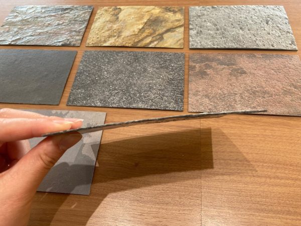 本物の石を使用していますがとっても薄いので加工が容易なのと