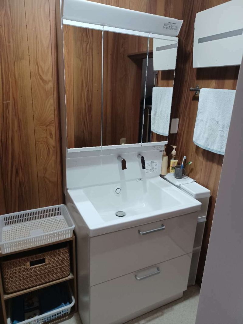 水道工事では、お風呂の配管の接続と今回は洗面台の組立を実施しました。