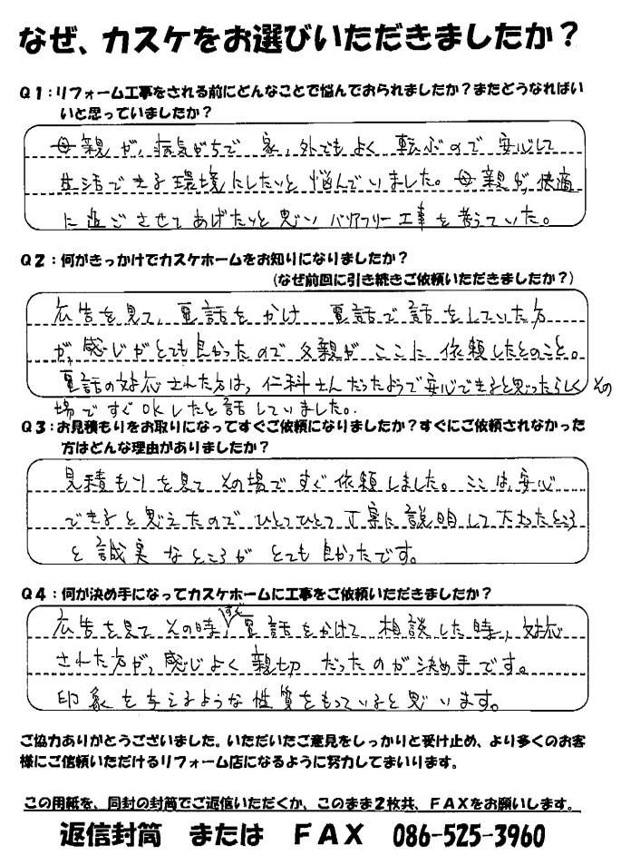 ひとつひとつ丁寧に説明して下さったところと、誠実なところがとても良かった
