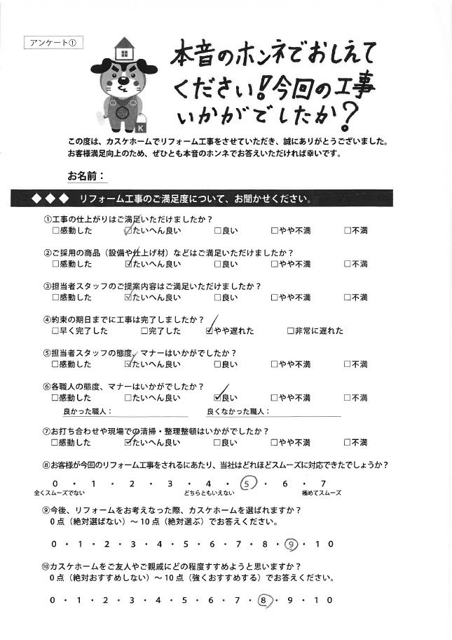 快適にそして安心して生活できる場を作っていただきありがとうございました